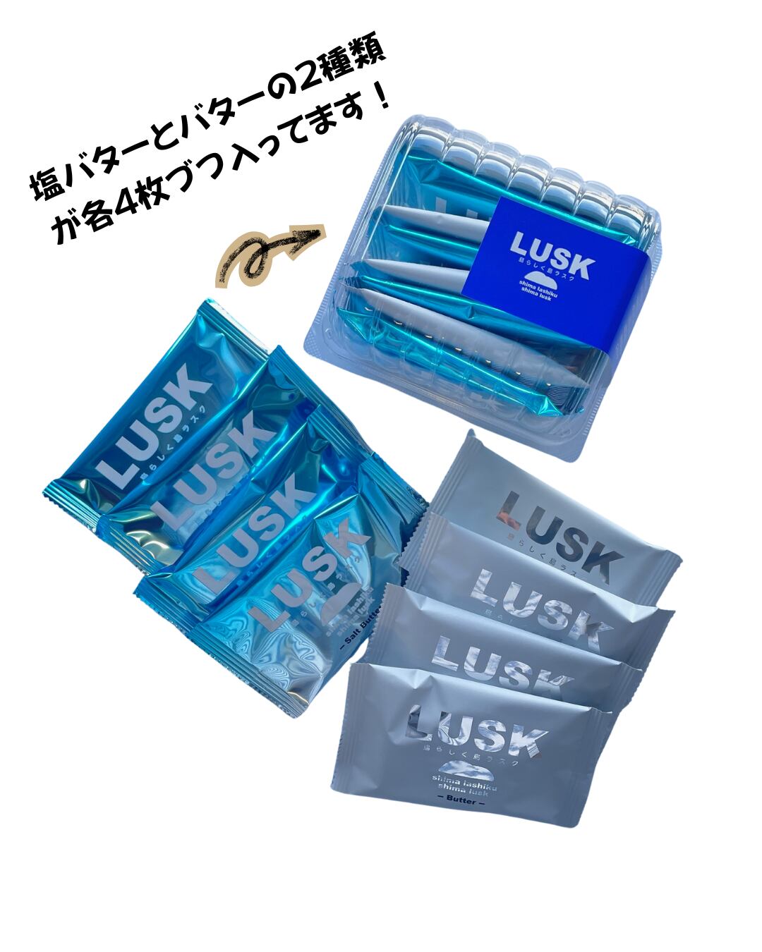 オリジナルバターと塩バターの2種類をそれぞれ4枚ずつの8枚入り。