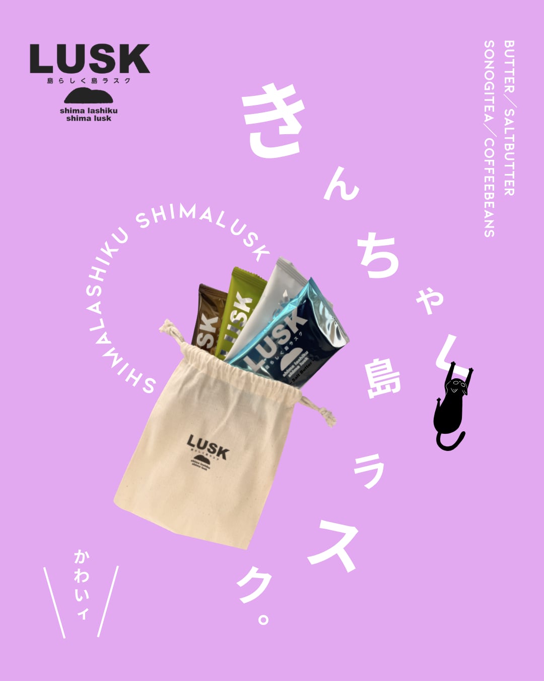 贈り物としても、自分へのご褒美としてもお楽しみいただける「巾着島ラスク」です。